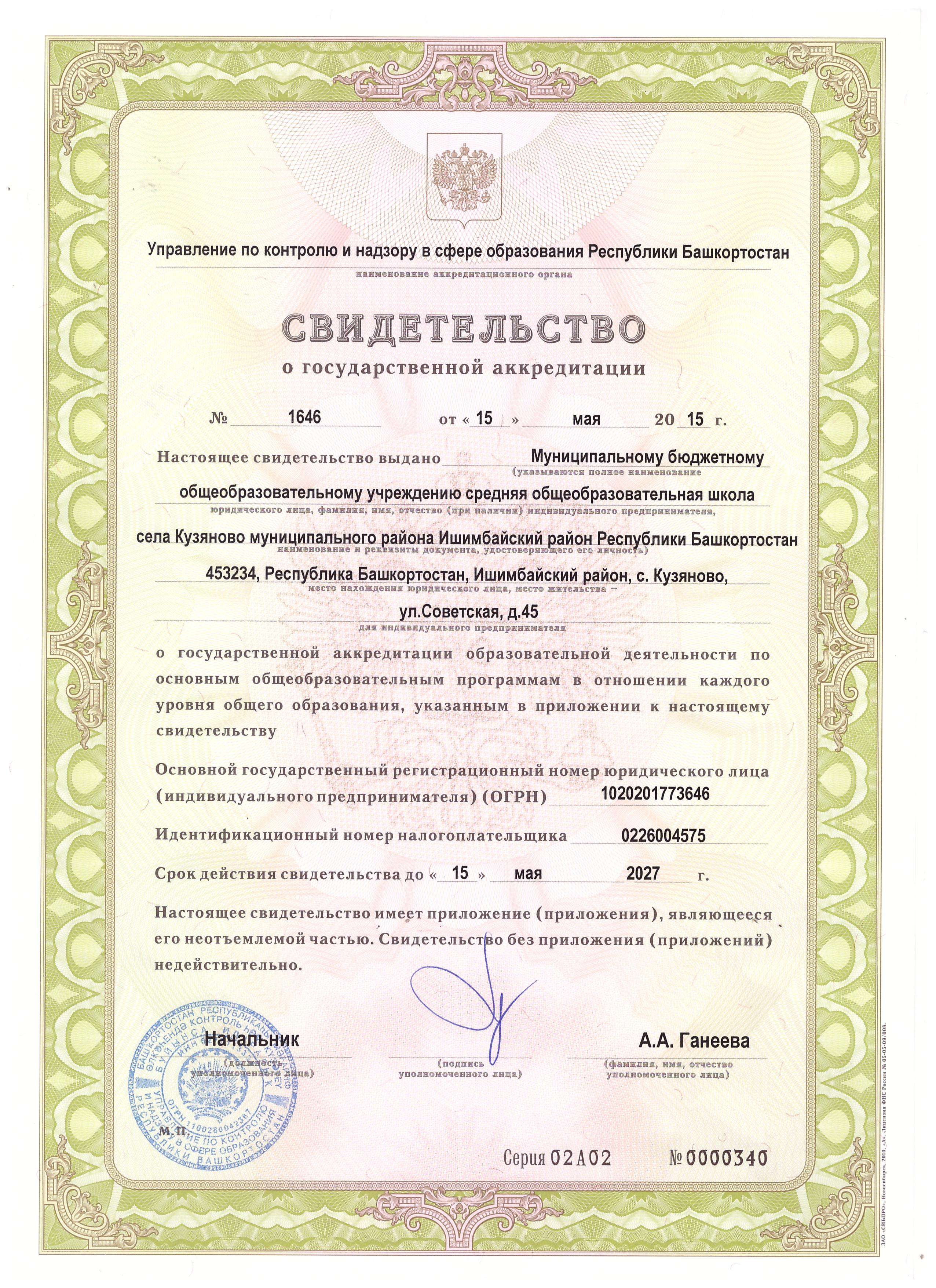 | Адрес места нахождения образовательной организации | юридический, фактический, телефон: 453239, Республика Башкортостан , Ишимбайский р-н, с. Кузяново, ул. Советская, д.45, тел. 8(34794)-73-2-39 |